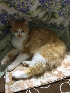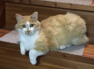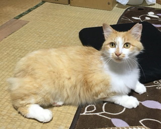 | 特徴(性格など) | 長毛で茶白の女の子です すぐにコロンと横になって、可愛さアピールします。 まだ、ビクビクが残っていますが、基本人好きです。 先住猫の1匹と相性が悪くて、よく追いかけられてしまって少し可哀そうな状態ですが 自分の寝床に閉じこもっているのではなく、ちょくちょく居間まで出てきて すり寄ってきます。 相性の良い仔ばかりなら、もっと慣れてくると思います。 外にいる時の写真になりますが、 4枚目:まだ首周りの毛が綺麗に生えている時です。毛が揃えばこんな感じになると思います。 5枚目:断尾していますので、お尻の感じがダックテイルのようになっています。 |