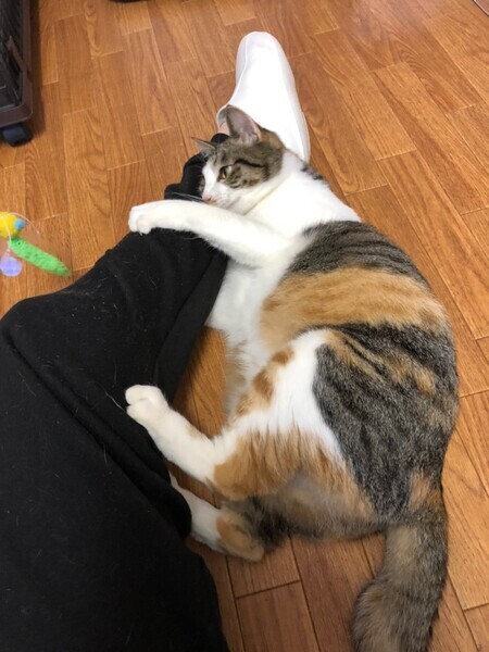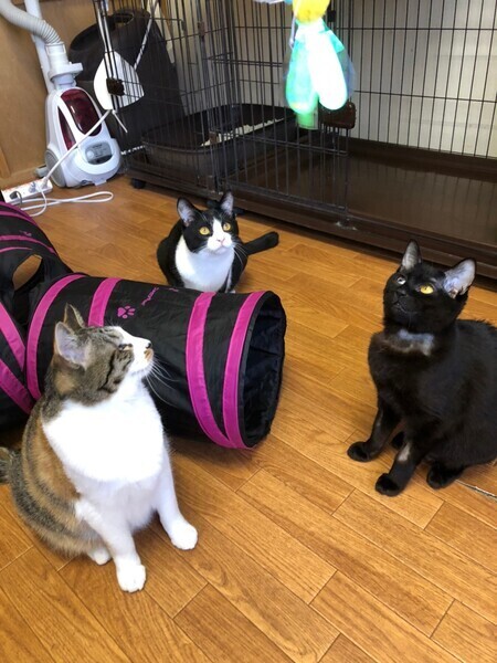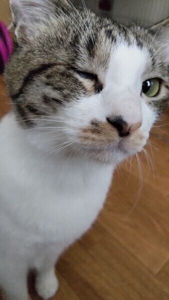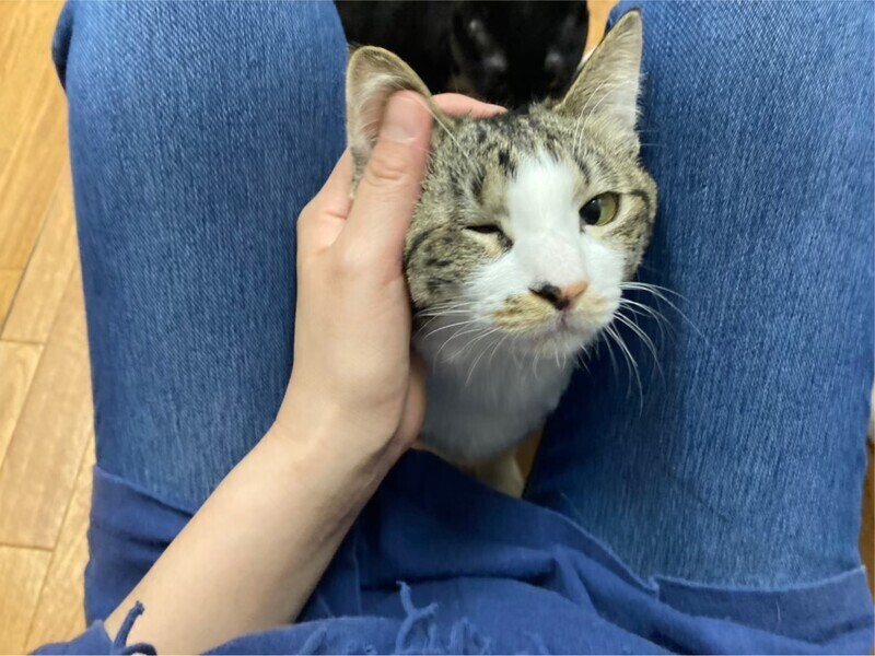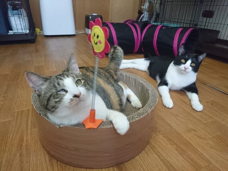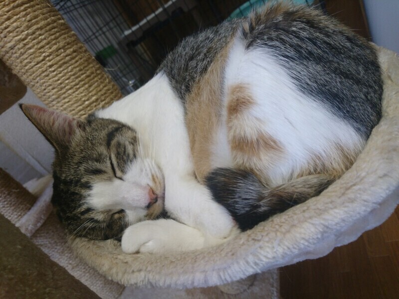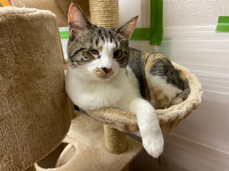 | 特徴(性格など) | 2021.3.1生まれ(推定) 毛色:三毛 好奇心旺盛で元気いっぱいな女の子です。 新しい環境にも初対面の人間にも物怖じしません。 とっても人懐っこく甘えん坊さんなので、 自ら人間にすり寄って可愛い声で「遊んで~!」とアピールします。 抱っこもさせてくれますよ~! ・いっぱいなでなでしたい ・抱っこしたい ・お膝に乗ってきてほしい ・甘えられたい ・一緒に寝たい ・たくさん遊びたい…など、 とにかく猫と触れ合いたい里親様には、とってもおすすめです! 保護した時にかなりひどい風邪をひいていたのが原因か、 右目の眼球は残っていないそうですが、片目でも不自由なく 元気に遊んでいます。 |