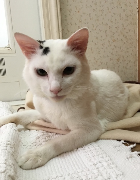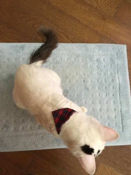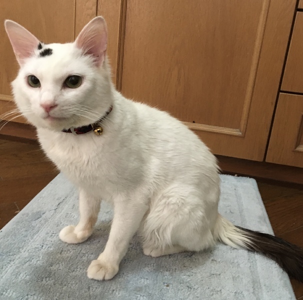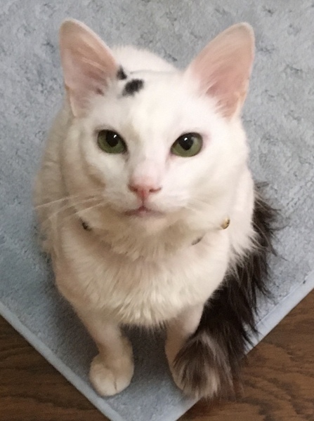 | 特徴(性格など) | 毛色:体は白/頭に黒ブチ/尻尾はこげ茶でやや長毛 (将来ゴージャスなタイプに成長しそうな予感!) 現在の体重:3.6キロ(保護時は3キロでした) 健康状態:良好/3種混合ワクチン接種済み/ 性格:全く人見知りが無く明るく陽気な性格で、誰にでも甘えていきます/他の猫とも仲良く出来ます/ネコジャラシが大好き!/とても人懐っこく社交的なので、駅長さんにだってなれそうな雰囲気ですよ! |