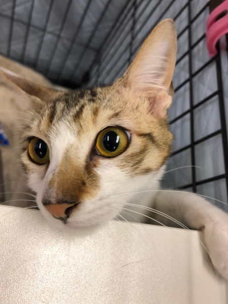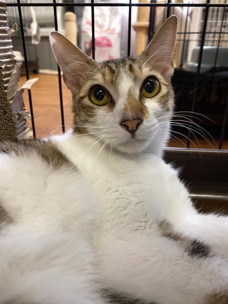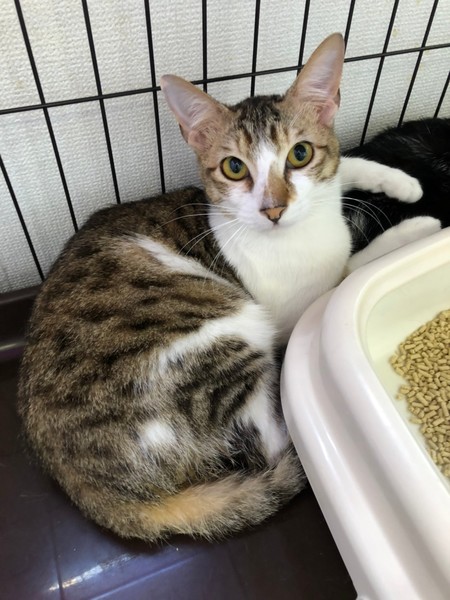 | 特徴(性格など) | 2020.6.6生まれ(推定) 毛色:キジ白 茶色薄めのキジ白さん。 明るい毛色で華やか☆ 人懐っこくゴロゴロ喉を鳴らすこともあります。 同じお部屋のガトーをグルーミングしてあげるしっかりさん。 多頭飼育崩壊現場からレスキューされたうちの5兄妹のうちの一匹。 「撫でてーー」とおしゃべりも上手♪ カヌレとお話ししてくださる里親様大募集です! |