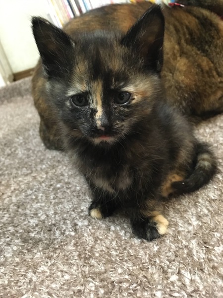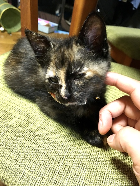 | 特徴(性格など) | 900gのサビちゃんです。 甘えたで、ゴロゴロ言って膝に乗ってきて寝ます。 ご飯もしっかり食べ、元気に遊びます。 |