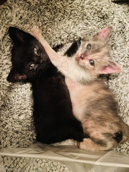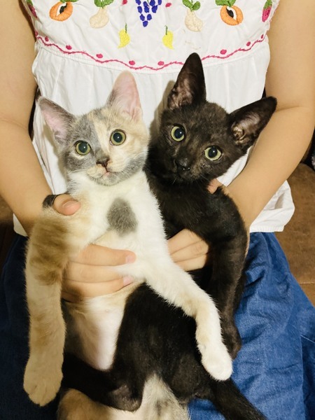 | 特徴(性格など) | ●猫の種類 黒猫 オス パステル三毛 メス ●猫の年齢 生後3ヶ月くらい ●現在の健康状態 保護した時は病気のオンパレードで一時は心配しましたが現在は健康状態良好です! ノミダニお腹の虫下し済み、エイズ及び白血病共に陰性です。 ●性格・特徴 【黒猫】やんちゃで甘えん坊な男の子です。 出来れば教育的指導をしてくれる先住猫ちゃんがいるお宅か、同じ月齢くらいの子と2匹一緒に飼われる事をオススメ致します。 【パステル三毛】おてんば娘です。オスの黒猫に負けない元気な女の子です。 黒猫同様元気すぎるので先住猫ちゃんがいるお宅か同じ月齢くらいの子と2匹一緒に飼われる事をオススメ致します。 もちろん、一緒に育ったこの2匹で一緒に迎えてくださるなら大変嬉しいです! 1匹の場合、人間相手にジャレたり暴れたりすため、社会性が身に付かず噛み癖が付くことがあります。 しかし、猫同士でジャレるとお互いに噛み加減などが分かるようになりますし、情緒の安定にもなると思います。 長いお留守番の際にも1匹より2匹の方が安心です。 |