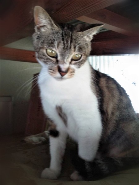 | 特徴(性格など) | 仮名、やよい 頭はサバで体はキジシロ・推定2歳くらいの女の子 環境に慣れるまで時間が必要です。 穏やかな性格で、控え目さん。 顔に向かって手を伸ばすと一瞬びっくりしますが、顎の下など撫でると気持ち良さそうに目を細めます。 相性もありますが、他の猫とも仲良く過ごせる子です。 現在、少しずつ心を開いてくれている最中です。 ゆっくりお付き合いしてくださる方を希望します。 |