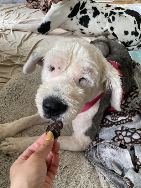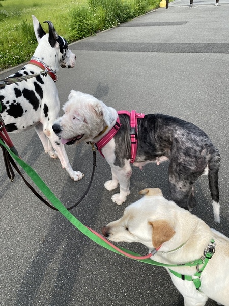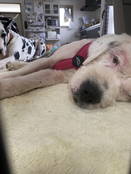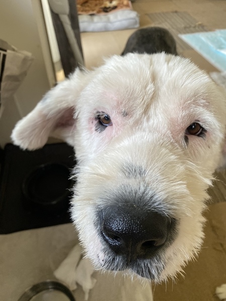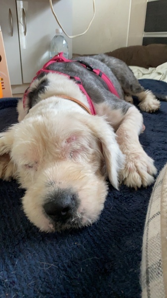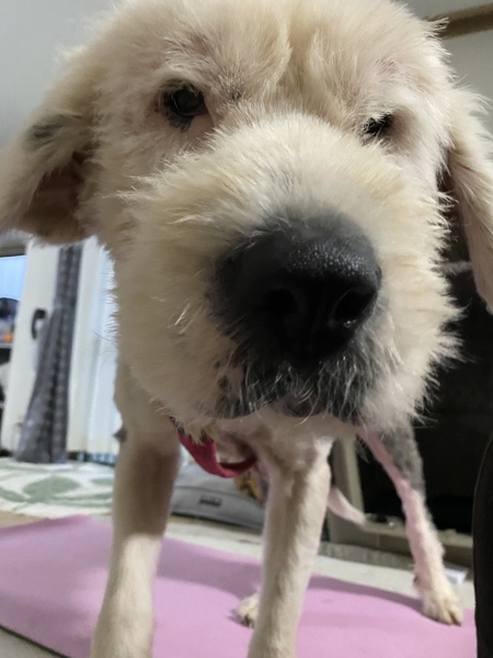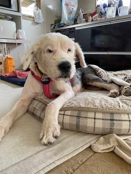 | 特徴(性格など) | 名前:ガレット 犬種:オールド・イングリッシュ・シープドッグ 性別:メス♀ 毛色:グリズルホワイト 年齢:4歳ぐらい 体重:36kgくらい 性格:人に対しては、とっても社交的!大人も子供も、どんな人に対しても怖がることなく、触ることができます。唸る噛むなども一切無く! とにかく、人好きです。 他犬に対しては、中型以上は大丈夫なのですが、小型犬でびびって逃げる子に対しては、逃がすまいと噛んでしまうことがあります。 中型〜大型と、堂々としてる小型犬には、全く問題なく一緒に過ごすことができます。 遊びにも誘います。 人が好き過ぎて、留守番が苦手です。 ハウスに入れて外出すると、5〜20分程映える時がありますが、だいぶ減ってきました。 留守番の時に、フリーにしておくと、家の中でうんちおしっこまみれになるので、少しの留守でも、ハウスには入れた方が良いと思います。 リビングから出て行こうとするだけで、必死に追いかけてきたりもするので、脱走には要注意です。 散歩が大好きで、リードを見ただけでお祭り騒ぎします。 落ち着いて行けるように練習中です。 いざ外に出ると、そんなに引っ張ることもなく、楽しそうに歩いています。 散歩の時にも、小型犬や猫を見たら興奮して引っ張ります。 チャイムに吠えたりすることは無いです。 1日の大半を寝たり、ゴロゴロして過ごすような穏やかな子です。 皮膚疾患があり、食べ物アレルギーから検査して対応を始めています。 食べむらがかなりあります。 チキン系は好んでよく食べますが、多分チキンアレルギーなので、魚系のフードをあげています。 3〜4ヶ月ずっとステロイドをしていて、かなり良くなりました。 本当に人好きで、何事にも全力で頑張るガレットちゃん。 もぅ辛い思いをさせない、素敵なご家族様に迎えてもらえるように。 末永く可愛がってくださるご家族様からのお問い合わせをお待ちしてます。 |