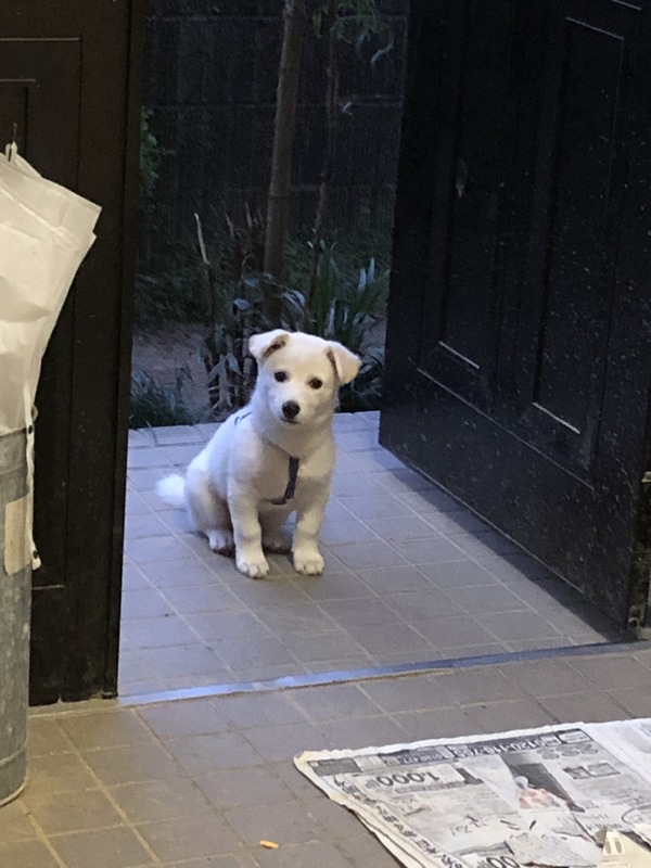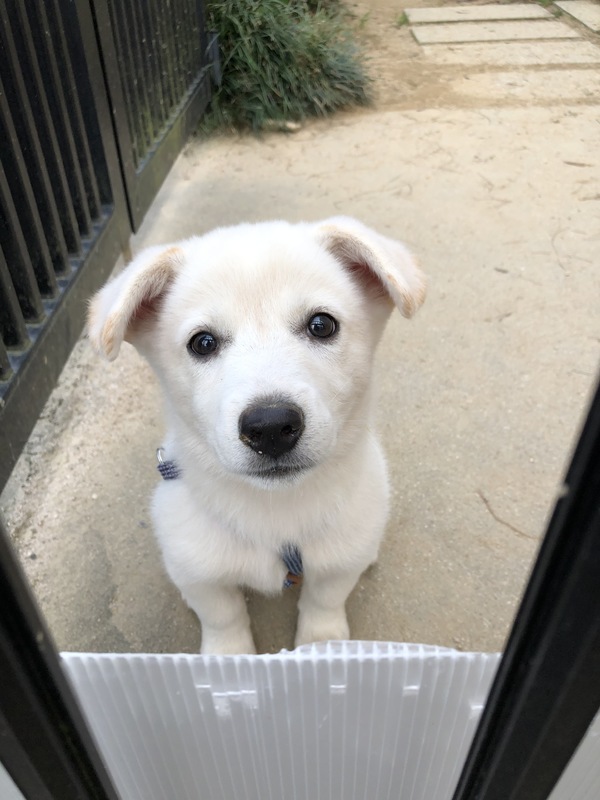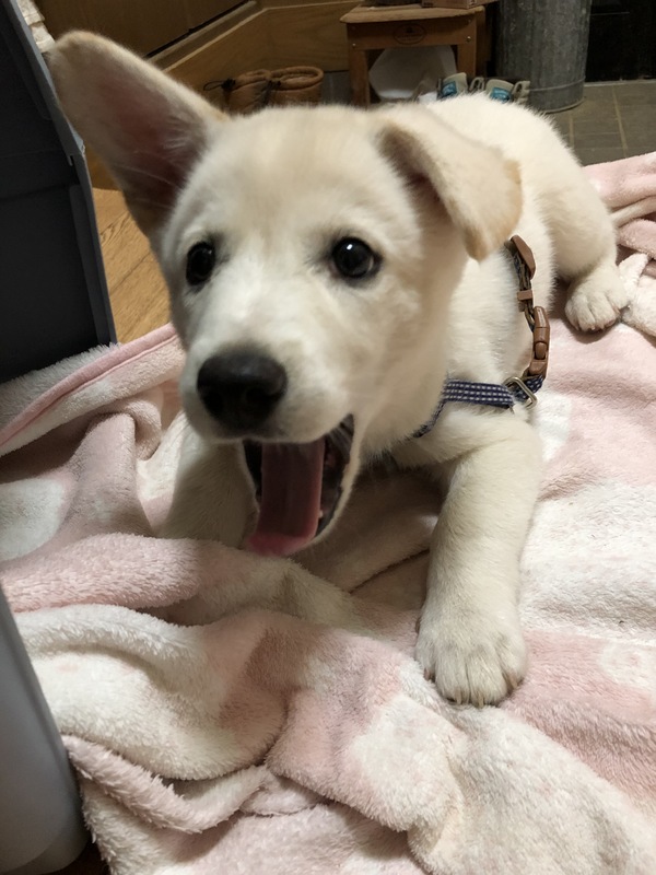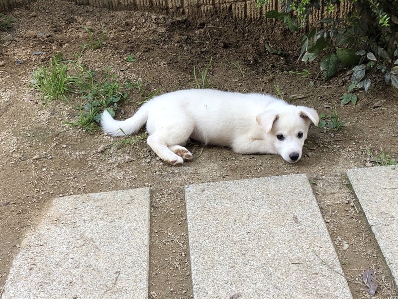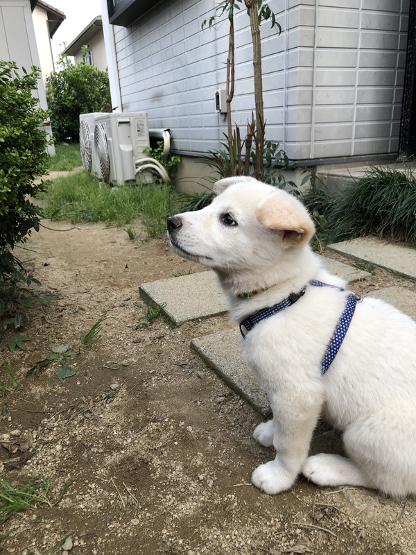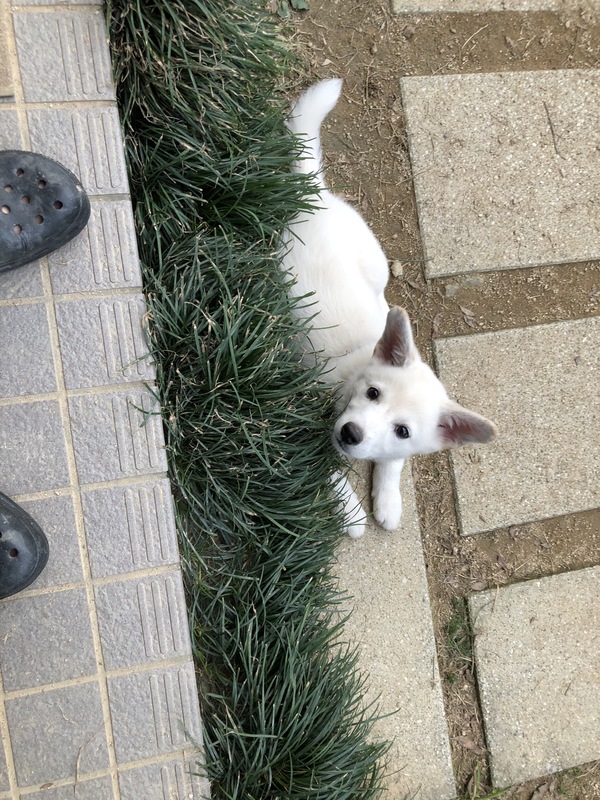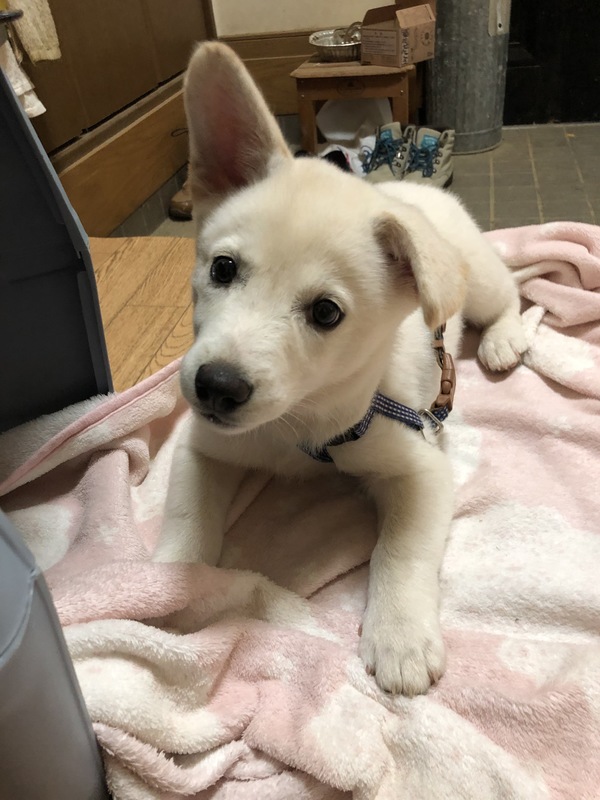 | 特徴(性格など) | 仮名:ナッツ 雄 2月後半生まれだと思います 体重:4.5kg(5/25現在) 体調には問題なく、健康です 食欲もあります とても人懐こく、ワクチン接種の時に獣医さんにも「性格よさそうだね~飼いやすい子だね」と言ってもらいました 少しベージュぽい所はありますが、ほぼ白 写真はたれ耳がありますが、立ち始めているところで立派な立耳になると思われます 足が太いし、現時点で4.5kgなので将来は大型に近い中型犬になるかと思います |