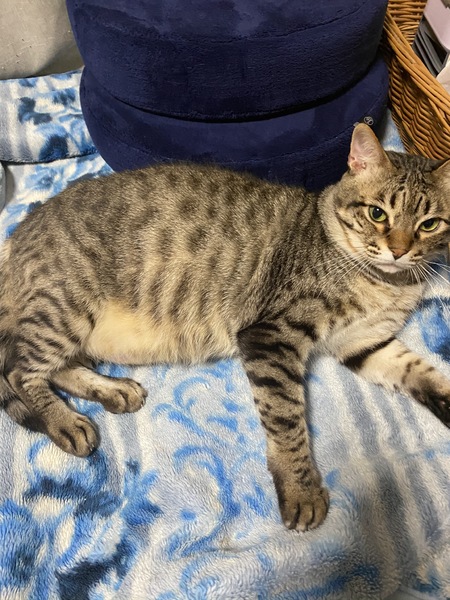 | 特徴(性格など) | サバトラの男の子 推定5歳 身体は大きめですが 大人しくて人懐っこい性格です(*^^*) 抱っこや撫でられるのが大好きな 甘えん坊です♪ ご飯の好き嫌いも無く、 特にちゅ~るが大好きで うっとり顔で食べています♪ |