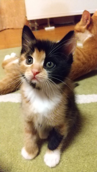 | 特徴(性格など) | 茶白(多分♂) 額がMになっており顎に茶色が少し入っている。 マイペースでよく寝ます。声が大きいです。 黒三毛(多分♀) サビに近い三毛。右目のパッチリアイラインがチャームポイント。 好奇心旺盛で1番自立している? |