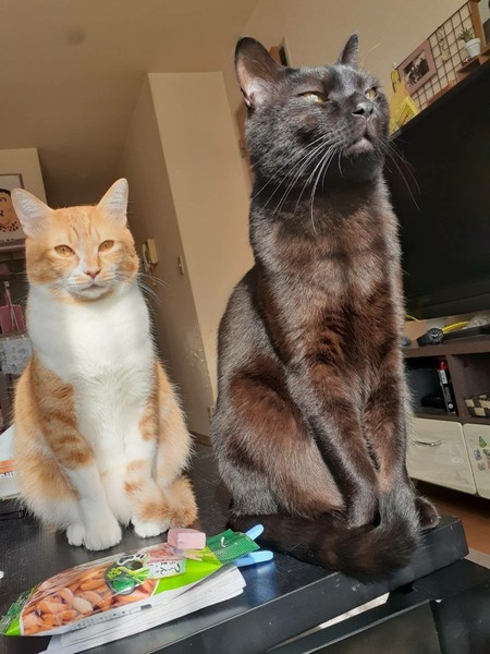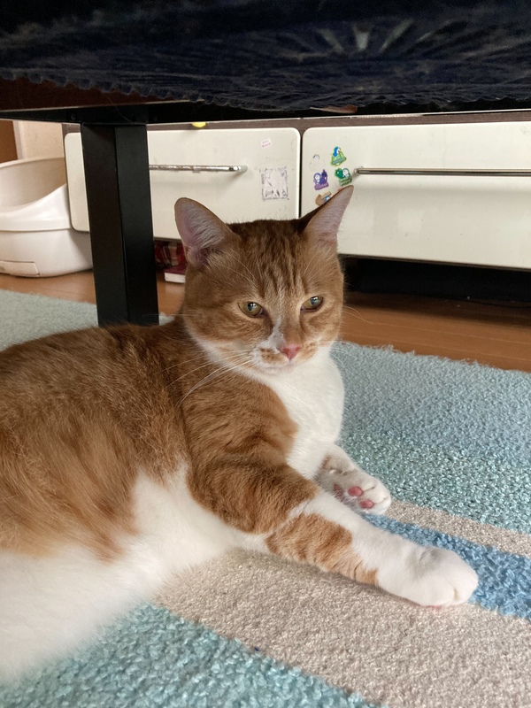 | 特徴(性格など) | 茶白の男の子。 茶白の男の子には珍しく、ツンデレさんです。 甘えたい時は自分から膝に乗ってきたり、ゴロゴロスリスリしてきます。 それ以外は、好きな場所で過ごすような子です。 |