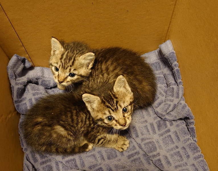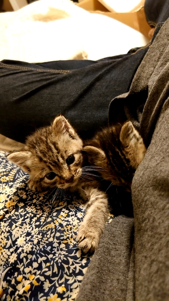 | 里親募集する理由 | 路地で濡れて鳴いているところを保護しました。2匹のキジトラでオスとメスです。 2匹ともとても人懐こく甘えん坊です。出来れば2匹でお迎えして頂ければと思います。 |