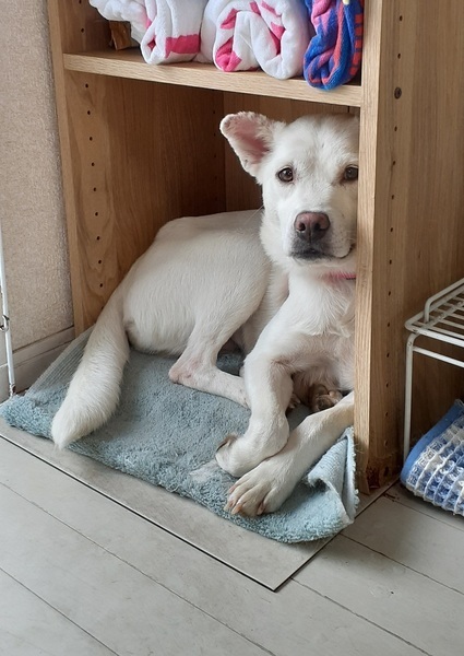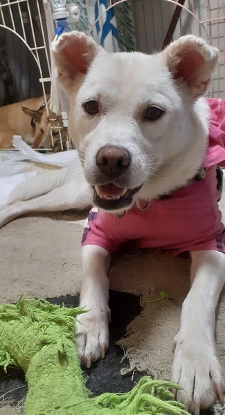 | 特徴(性格など) | 【愛称】 くー 【犬種】 MIX 【性別】 メス(不妊手術済) 【年齢】 推定2歳 【毛色】 白 【体重】 12.8kg(5/18現在) 【状態】 ノミ・ダニ取り済、駆虫済検便(-)、混合ワクチン接種済、 マイクロチップ装着予定(6/7)、フィラリア(+)ボルバキア治療中 【人馴】 やや慎重です 【預かり場所】 神奈川県座間市 【日記】 姫菜ママのブログ http://ameblo.jp/sinhina789 野本利恵 https://www.instagram.com/nomototoshie/(インスタ) 【性格・その他】 おっとりとした優しい女の子です。叩かれた経験があるのか人の手を怖がります。 特に初めての人には警戒します。馴れてしまえば、ペロペロしたり、 頭を押し当ててきたりと甘えん坊になります。 食欲旺盛で、なんでもよく食べます。食いしん坊で、人の食べ物を持って行こうとしますので 気を付けてください。 排泄は外でも室内でもできます。シートへの成功率は80%くらいと高めです。 お散歩は大好きで嬉しそうにシッポを上げて歩きます。強い引きも無く上手に歩けます。 ネコは好きでフッと立ち止まり凝視、もう少し人に馴れてくると追いかけるかもしれません。 夜寝るときはケージで寝ています。扉は開けているので夜中に様子を見に部屋を覗くことが ありますが、直ぐに戻って行きます。 犬は好きで面倒見もいい子です。人が好きな先住犬のいるご家庭に向いていると思います。 まだ2歳と若いので、今後15年先にもしっかりとお世話ができるかどうかを ご一考いただいてからご応募ください。 フィラリア陽性のため、ボルバギア治療中です。陰転するまで治療を続けていただくことになります。 フィラリアの症状は出ておらず日常生活に支障はありません。 引き続き室内飼育で、お留守番が少なく、定期的なワクチン接種やフィラリア予防、 ボルバキア治療の継続などの健康管理、脱走・逸走防止への細心の注意、近況報告を必ず お約束していただける、関東圏内のできるだけ遠方で無いご家庭で、「くー」を 終生家族の一員として大切にして下さる方からのお問合せをお待ちしております。 【お申し込み】 直接 いぬ助けのHPの「くー」のページよりお申し込みください。 → https://www.inudasuke.com → いぬの里親さん募集 → 「くー」のページより 内容をご確認の上、アンケートを送って下さい。 (こちらのサイトのアンケートですとお時間を頂く場合がございます。 直接いぬ助けのHPよりお願いします。) 【いぬ助けSNS】 フェイスブック→ https://www.facebook.com/inudasuke/ インスタグラム→ https://www.instagram.com/inudasuke/ |