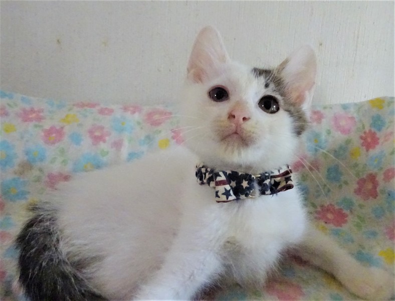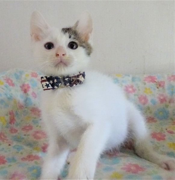 | 特徴(性格など) | 仮名: 小毬(こまり)ちゃん(メス) 毛色: 殆ど白の白キジ 性格: まだ小さいので個性ははっきりとしませんが、少し怖がりのようです。 人を恐れることはなく抱っこも好きです。 最近は猫じゃらしに反応するようになり遊んでいます。 プロレスも好きです。 ご飯大好きなので、ご飯の時は大騒ぎです。姉妹の小鈴ちゃんと一緒のお家に行けると嬉しいです。 まだ小さいのでしばらくは見守りが必要ですから、留守番時間の短いお家を希望します。 ノミ取り済 検便済 駆虫済 3種混合ワクチン 猫エイズ・白血病ウィルス検査は共に陰性です |