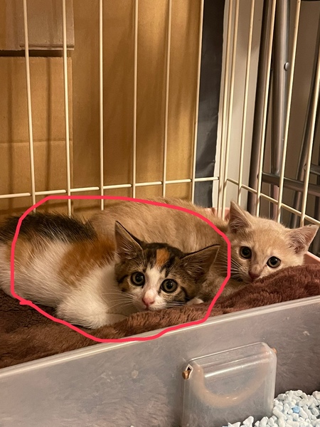 | 譲渡費用(医療費、交通費など) | 猫風邪をひいている為抗生物質を処方してもらい、ノミ取りのポットンもしてもらいました。 保護活動をしているため、次の子に繋げるためにかかった費用6千円を譲渡費用とさせていただきます。(お薬が残っておりましたらお薬もお渡しさせていただきます。) |