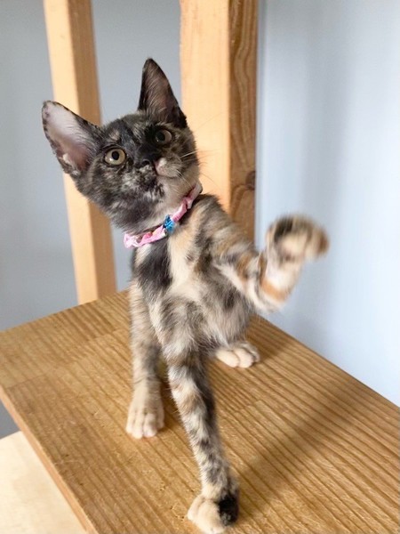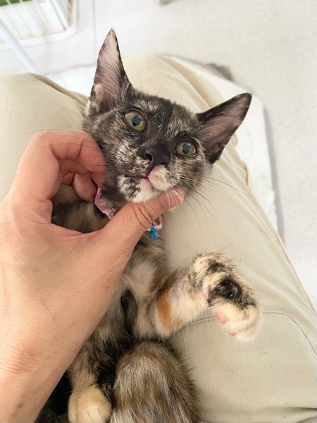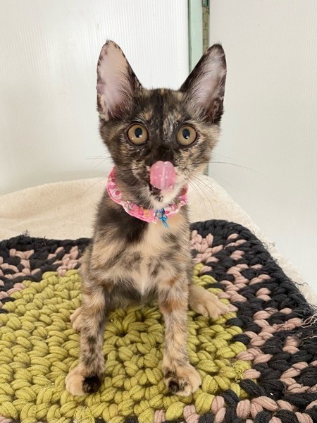| 特徴(性格など) | 末っ子キャラな甘えっコ「ハミング」ちゃん❤ 甘え上手なサビ猫さんです♪ 現在、ドライフードを置き餌として栄養補給、水分補給のため一日4回パウチを与えています。 <推定誕生日:4月中旬> |