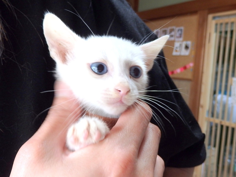 | 特徴(性格など) | まだ性格ははっきりしていませんが元気に過ごしています。 沢山の仔猫を保護していますので是非見に来て下さい。 ・ノミダニ回虫駆除済み ・エイズ(−)白血病(−) ・3種混合ワクチン接種予定 |