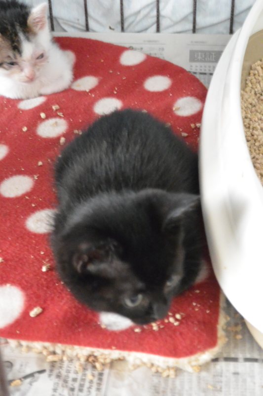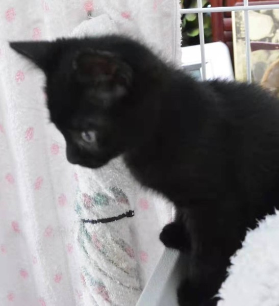 | 特徴(性格など) | 黒猫の元気一杯、とってもかわいい女の子です。 兄弟猫と毎日楽しく遊んでいます。 |