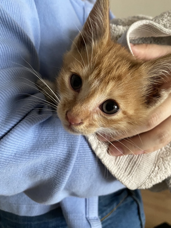 | 特徴(性格など) | 茶色っぽい子猫です。 目はグレーで、まだ小さいです。 毛並みも綺麗で、歯ももう少しで生え揃いそうです。 人懐っこい性格で、抱っこされるのが大好きです。 |