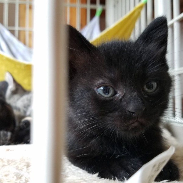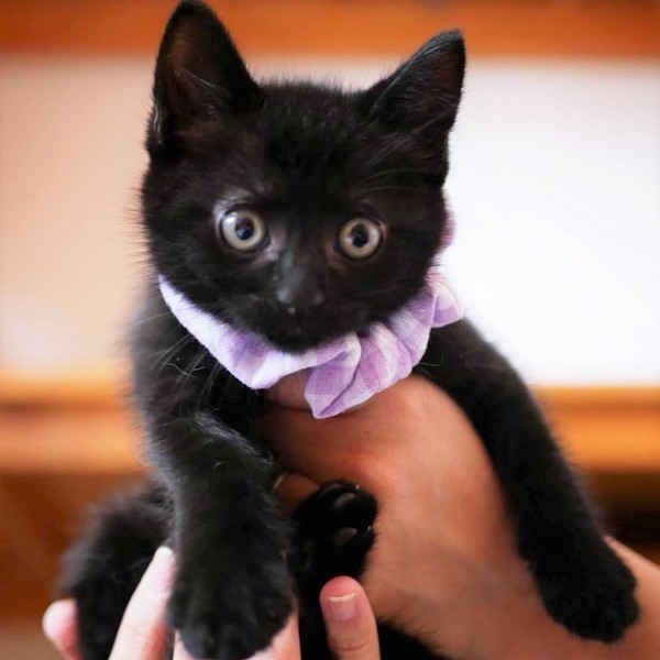 | 特徴(性格など) | お外にいた時は、めばる?あゆ?むつのアクティブな子達の後をしいらと恐る恐るついてきていた慎重派。 お家に入ってからは兄妹の中でも特に甘えん坊な男の子になりました。 預かりさんの手をカプカプ甘噛みしながら遊んでよーと甘えてきたり、膝に乗ってきたり、兄妹たちが遊んでいても自分は人のところでゴロゴロしています。 はやも黒猫ですが、顔立ちが幼い方がむつです。 お願い:兄弟でとても仲良しなので、2頭以上で飼育して下さる方を希望しています。 |