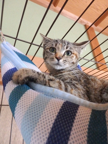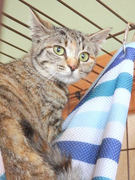 | 特徴(性格など) | ハンモックが大好きなシャイで控えめな6か月の女の子、つくしちゃん。 恥ずかしがりやで近づいて来てはくれないのですが、かわいい目で見つめ返してくれる穏やかな子です。触られるのも嫌いじゃないようでじっとしています。 ゲージでお留守番が出来るので、働いている方にも飼いやすいと思います。 一頭で大切にしてくれる方、つくしちゃんをよろしくお願いします。 ・去勢手術済み ・ノミダニ便虫駆除すみ ・エイズ(−)白血病(−) ・3種混合ワクチン接種済 |