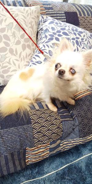 | 特徴(性格など) | ロングコートチワワ 名前は、ことのちゃん 体重 3.2kg ワクチン 接種済み レボリューション 済み フィラリア 陰性 パテラ 問題なし 心雑音 問題なし 避妊手術 済み 保護時はとても怖がりでしたが、預かりさんの所で2ヶ月家庭生活を送り、抱っこ、お散歩が出来るようになりました。 無駄吠えありません。 繁殖場で、左目に傷が付きました。 右目は良く見えます。 体にハートの模様があります! 幸せを掴めます様に。。。 |