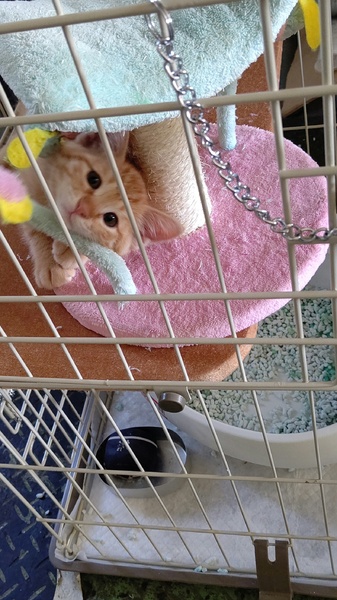 | 里親募集する理由 | 今年3月中旬に会社敷地内にて、子猫6匹生まれていましたが、親猫が育児放棄してしまい、保護して、5匹は、里親が見つかりましたが、残り1匹だけ里親が見つかりません。人馴れしていて、元気いっぱいです。 | ||