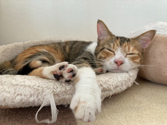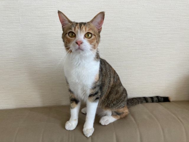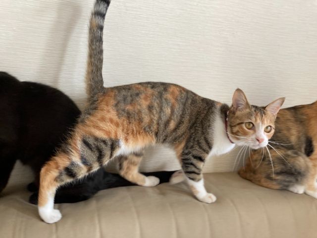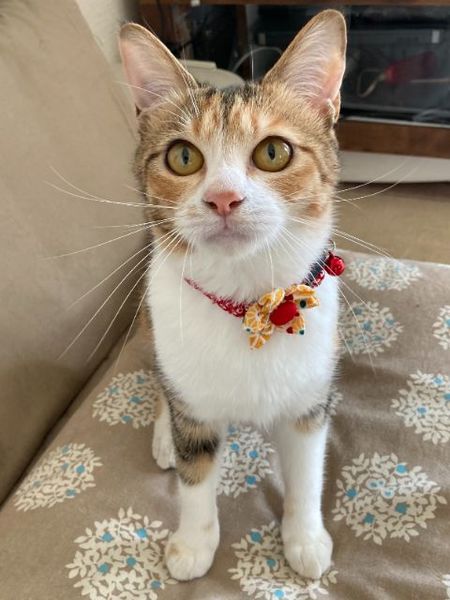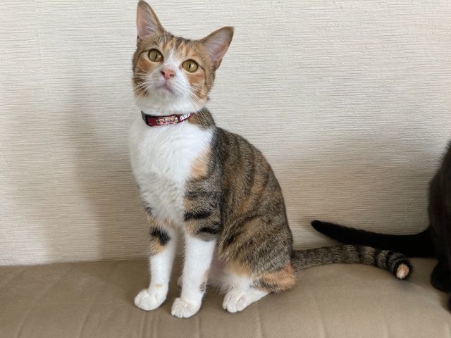 | 特徴(性格など) | ☆☆☆ご希望の方は、以下のアンケートフォームにご記入の上、送信してください☆☆☆ ねこ親希望アンケート→ http://chibawan.net/contactform_cat 【猫No】 3302 【愛称】 さつき 【性別】 メス 【年齢】 推定1歳(2021/5/30現在)(2020/4頃生) 【毛色】 三毛 【体重】 2.8kg (2021/5/30現在) 【状態】 ワクチン接種済(2021/5/1)、血液検査(エイズ(-)・白血病(-))、ノミダニ駆除済、トイレ習得済、不妊手術済、マイクロチップ登録済 【保護場所】千葉市 【日記】 http://sakuranouchi.blog.fc2.com/ さくらのおうち https://www.instagram.com/sakuranouchi/ Instagram 【経緯】 多頭飼育現場からレスキュー 【性格】 永遠の子猫のように小柄、好奇心旺盛で活発な女の子です。縞模様がくっきり入った縞三毛で、尻尾の先端がペンライトのような配色になっているのがチャームポイントです。おもちゃに良く反応し、疲れ知らずで元気いっぱいに遊びます。とても食いしん坊で、人の食べ物にも興味津々なので、食べ物は猫の手が届かない棚に片付けるなどの管理を徹底して頂く必要があります。好奇心旺盛ですが、イタズラすることなく(食べ物や猫に危険なものは片付けておくなどの基本的な管理は必要です)お利口にお留守番ができるので、共働き家庭など長時間の留守番があるご家庭でも安心して飼育できると思います。猫のことが大好きで、猫見知りは一切なく、年齢性別問わずどんな猫とも上手に付き合うことができるので、先住猫がいるご家庭でもすぐに馴染めると思います。多頭飼育環境で生まれ育ち、人馴れはしているものの、保護した当初は人の手で撫でられる経験に乏しい様子でしたが、1ヶ月弱の短期間で抱っこさせてくれるまでに変化しました。好奇心旺盛で甘えん坊の性格のようですし、今後も人とのスキンシップを積み重ねていくことによって更に変化していく伸び代があると思いますので、さつきちゃんが変化していく様子を楽しみながら見守って頂けるご家庭からのご応募をお待ちしております。保護宅での日常の様子はInstagramでご紹介しておりますので、ぜひ一度覗いてみて下さい。 【補足事項】多頭飼育環境の出身で、我が家でも常に他猫と一緒に寄り添って過ごしていますので、先住猫のいるご家庭または他猫と一緒にお迎え頂けるご家庭であれば、新しい環境にもスムーズに馴染めると思います。単頭飼育をご検討されている場合、新しい環境に慣れるのに時間が掛かるかもしれませんが、さつきちゃんのペースで新しい環境に馴れていくのを見守ってください。 【その他】猫に合った生活スタイル、終生飼養、完全室内飼育、脱走防止対策、定期的なワクチン接種などの健康管理、定期的な近況報告をお約束いただけるご家族で、アンケートに快くお答え頂ける方からのお問い合わせをお待ちしております。お届けの範囲は、猫の負担を考慮して千葉市から車で90分程度の範囲を希望します。 |
