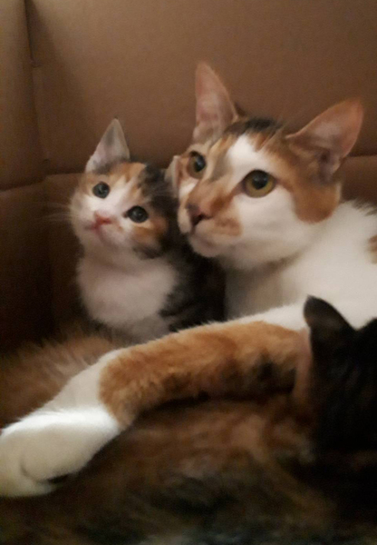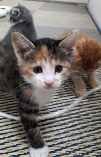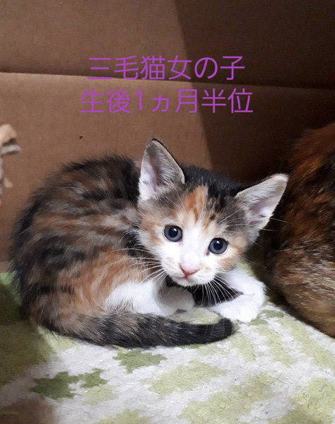 | 特徴(性格など) | 三毛猫(仮名さくらちゃん)とお母さんの三毛猫の2匹です。 ワクチン接種予定です レボリューション済み お母さん猫でエイズ白血病検査してます。 共に陰性でした。 まだ小さいのでお母さんに甘えてます。 兄妹達とも毎日遊んで寝てを繰り返してます、 可愛い時期です、お届けはもう少し成長期してからになります。 |