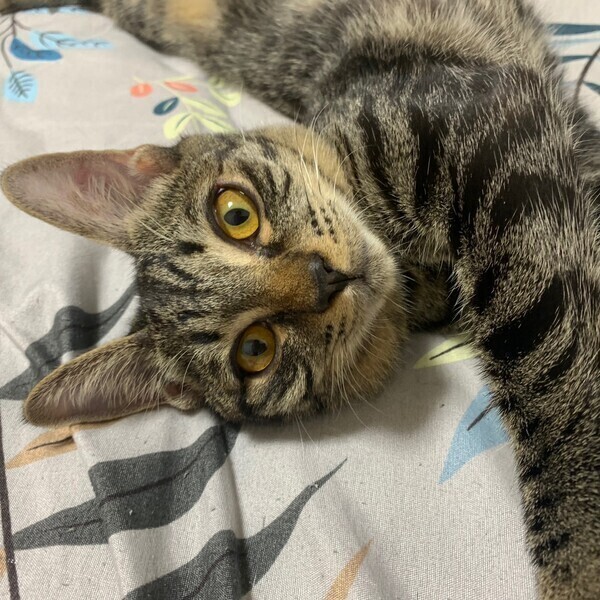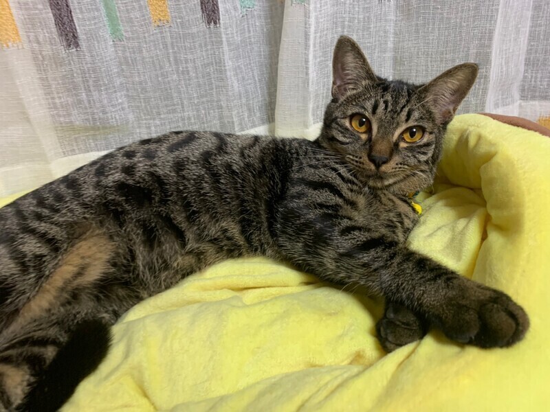 | 特徴(性格など) | ちょっと控えめな「ブルーベリー」くん❤ みんなが遊んでいるのを見てボクも遊ぼかなぁ〜と近寄って遊び出すのんびり屋さん♪ まったりひとりで昼寝が大好き♪ パウチタイムになると率先して、しっかり食べてくれうようになりました♪ 人が座ると、必ず傍にやってくる甘えん坊♪ 現在、ドライフードを24時間の置き餌として栄養補給、水分補給のため一日3回パウチを与えています。 <推定誕生日:4月中旬> |