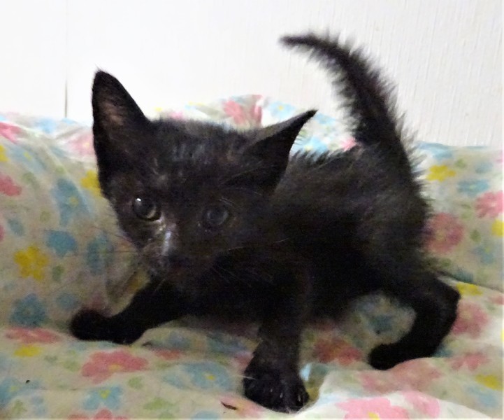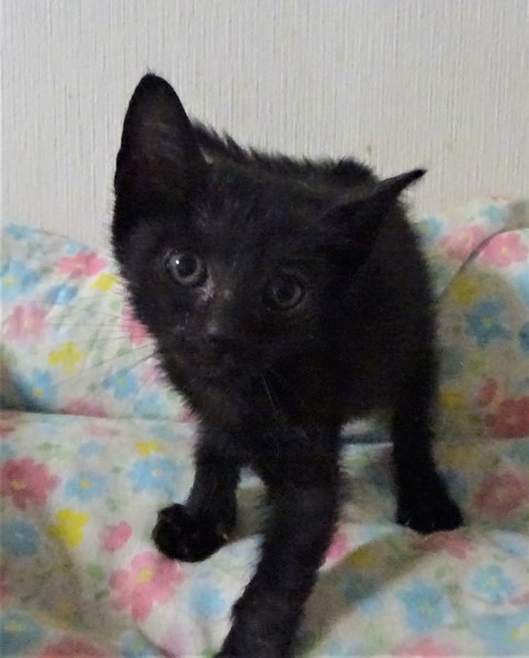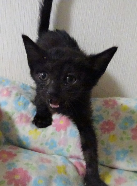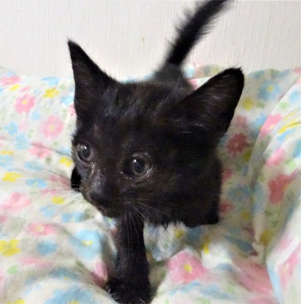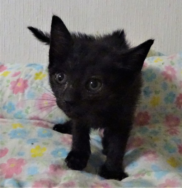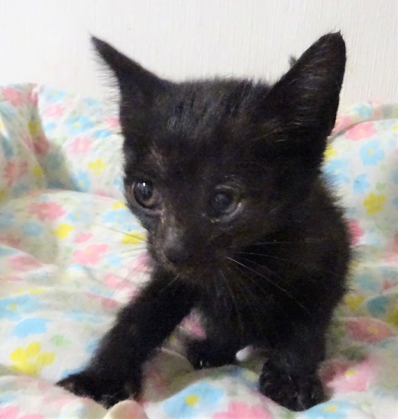 | 特徴(性格など) | 仮名: ノアちゃん(メス) 毛色: 黒猫、尻尾長い 性格: 個性はまだはっきりしませんが、ミルクで育っているので人見知りせず、人が好きです。 ご飯もミルクも大好き。 特にミルクはがぶ飲みします。 怖がりの面もあり、猫じゃらしなどはまだ怖いようです。 カメラも怖がります。 人には甘えます。4姉妹なので、姉妹のシルビアちゃん、アンナちゃん、グレコちゃんのうちの誰かと一緒のお家が希望です。まだ小さいのでしばらくは見守りがひつようです。留守番時間の短いご家庭でお願いします。 ワクチンは生後2か月となる6月5日頃接種予定です。 ノミ取りすみ 検便済 駆虫済 3種混合ワクチン(1週間以内に接種予定) 猫エイズ・白血病ウィルス検査はともに陰性 |