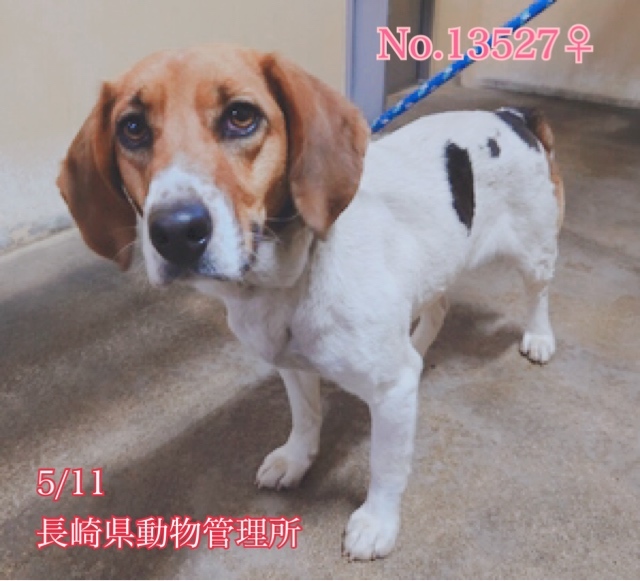 | 里親募集する理由 | 若くて可愛いビーグルちゃん、人懐こくて歯も綺麗、まだ3歳前後位に見受けられる女の子が寂しく助けを待っています! 訳も分からず突然連れて来られて収容され、どんなに寂しく心細いか。一日も早く温かい家庭の中で過ごさせてあげたいです。 ⭐️県外、遠方の方でも譲渡の条件が合い、良縁に恵まれましたら里親になっていただけますのでどうぞ宜しくお願い致します! ※募集内容を熟読し、必ずご家族とよく相談をされた上、ご家族全員の賛同を得られてからのお問い合わせ をお願い申し上げます。 ⭐️外飼いでは無く、室内飼育で家族の一員として迎えて下さる方は、「引き渡し方法」のところにあります【アンケート】にご回答と共にお問い合わせをいただけますよう、お願い申し上げますm(_ _)m 5/11(火)長崎県南島原市口之津町にて彷徨っているところを保護され保健所収容、飼主の迎えが無いまま期限が切れ長崎県動物管理所に移送されてきました。 ひとりぼっちでいつから彷徨っていたのか( ; ; )空腹、雨風にも苦しんだことでしょう。 それから保健所に、その後は管理所に移送されてきてずっと不安で寂しいと思います。。 現在の体重は見た目の推定になりますが大体10キロ前後位でしょうか。元気にワンワン吠えています(^^) お座りやマテなどは知らないようですが人懐こく尻尾を振って寄ってきますし、誰が撫でたり触ったりしても大丈夫で手からおやつも食べてくれてとても愛らしいです♡ 抱っこは、された事が無く怖いのか?しようとすると大暴れして逃げます(^_^;) 優しい職員さん方が怖くないよ、今度こそは幸せになれます様にと毎日触れ合いながら、一生懸命にお世話してくださっています。 無理もありませんが出たいよ、構って〜と言う様に人の気配があったり、他の子がお散歩に行く時は私もー!と元気にワンワン要求吠えしています。人がそばに行くまで吠え続けているそうです。収容中の他犬には怒ったり唸ったりの威嚇をする事も無く、あまり興味が無いのか?とにかく構ってほしくて檻から出たくて!という感じですฅ•ﻌ•ฅ 職員さんが連れ出してくれるお散歩では張り切って嬉しくてグイグイ、リードの引きは強めです。 急な走り出しや後退りからの首輪抜け・胴輪抜けなども想定し、どんな子であっても油断は禁物で脱走、逃走には充分な配慮と注意が必要ですm(_ _)m この子のペースや体力をみながら、適切に制御し、躾や朝晩のお散歩などの運動の時間をしっかり取ることの出来るご家庭を希望しておりますm(_ _)m 捨てられたのでしょうか、迷子でしょうか。 何故ここに居なければならないのでしょう。 人間よりはるかに短い犬生なのに。 何故大切な家族を直ぐに探さないのか、 何故最後の時まで愛せないのでしょうか… 保護時、首輪や胴輪などは何もついていませんでした。(写真の首輪は管理所でつけた物です) 可哀想に、家族の元へ帰りたい、でも収容されたら帰れません。 言葉を持たない大事な家族を守る為に首輪、胴輪には迷子札・鑑札を必ずつけて頂きたい、そしてそんな悲しい状況のままでいたより保護されて良かったと考え、この子に幸せを、温かい本当の本物の家族を見つけたいと願っております⭐︎⭐︎ 人間が焦らずにゆっくり長い目で見守りながら、愛情を持って接すればこの子ならきっといつか新しい家庭に馴染んでいけるのでは、本当は思い切り甘えて遊んでほしいのだと思います。 辛かった過去がある事も踏まえ、人は怖くないんだよと、人を信じてくれる様に、例え長期戦でも広い心でドンとこい^_^と仰って頂ける方、この子をずっと尻尾フリフリ♪ニコニコの笑顔にしてくださる方、いらっしゃいませんか? どうぞ宜しくお願い申し上げますm(_ _)m ⭐️必ず室内飼育で、譲渡後には速やかな病院受診・健康診断(血液検査、尿便検査、ノミダニ・フィラリア予防やシャンプー等)避妊手術、混合ワクチンをする事が可能な、なるべくお留守番が少ない、沢山優しくスキンシップやコミュニケーションで触れ合っていただけるご家庭。 ⭐️室内でのトイレの躾も1からとなります。 まだ若く躾は入りやすいと思われますがそれまでには何かと手がかかり大変です。 覚悟と根気・理解で受け入れて下さる方。 ※譲渡後はお早めの避妊手術をお願いしますm(_ _)m ⭐️出来れば中型〜大型犬の飼育経験があり愛情を持って接することが出来る方、朝晩のお散歩や運動、スキンシップやコミュニケーションに充分時間をあてられる方、場合によりトレーニング教室なども視野に入れて考えてくださる方。 何卒宜しくお願い致します。 ※混合ワクチン、フィラリア予防実績、狂犬病予防接種、避妊の有無は不明です。 フィラリア陽性や妊娠の可能性も0では無くあり得る事となります(>_<) ⭐️吠えても大丈夫なご家庭。 以上の点を踏まえ、この子の置かれている状況、寂しかった、傷付いているであろう心をご理解のうえ、全て受け入れ寄り添って