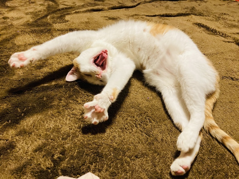 | 特徴(性格など) | 茶色&白 パッカリ・ハチワレ。 お茶目で元気。最初は人見知りしますが、慣れると抱っこダイスキ♡です。両腕と全身をびょーんと伸ばすのが好きです。ごはんの時、「マ~グ~ロ~」と元気よく鳴いているように聞こえます! |