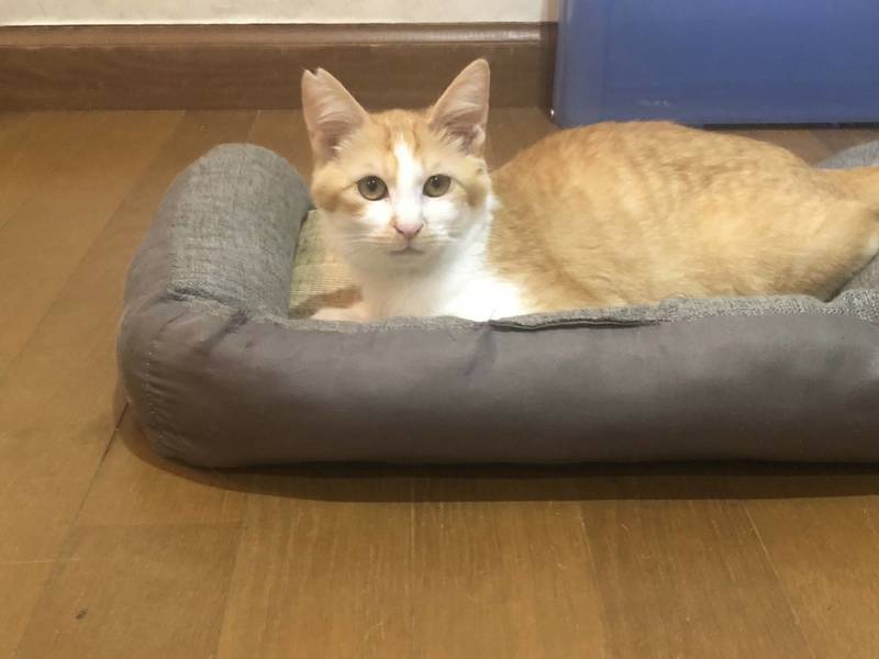 | 特徴(性格など) | やんちゃで甘えん坊な茶白の男の子です 常に誰かの側に居たがる寂しがりやです 血液検査済みで猫エイズ、白血病など陰性です 大人猫にもよく甘えるので多頭飼いにも向いていると思います! |