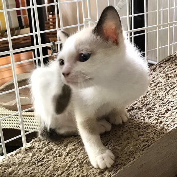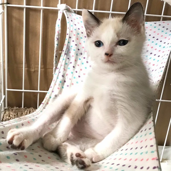 | 特徴(性格など) | ◆クリオネちゃん ●月齢の小さな子猫は、以下の条件についてご了承の上で応募をご検討下さい。 ◆高齢者のみのご家族からの子猫のお申し込みはお断りさせて頂きます。 ◆お留守番の少ないご家庭を希望します。 ◆小さなお子様のいるご家庭は状況によりお断りする場合がございます。 ○沖縄県内で保護されました。 ○生後2ヶ月くらい(2021年6月上旬時点)の白地にベージュや茶模様があるシャム系の男の子です。 ○キレイな青い目がチャームポイントです。 ○平ためな短い尻尾です。 ○とっても穏やかなのんびりした子で、寝るのが大好きですが、遊びだすと活発によく遊びます。 ○ウェット、ドライどちらも好きです。 ○同じく里親募集中の「マンタ」「くらげ」「シャチ」とは兄妹です。 ○まだ小さな仔猫のため、お留守番の少ないおうちをお待ちしております。 ★ワクチン済み、ウイルス検査は猫エイズ、猫白血病ともに陰性。 ★不妊手術は成長と体調をみて実施予定です。 ○6/6(日)開催の譲渡会に参加予定!下の要項をお読みいただき、ぜひ会いに来てください♪ ☆★☆★☆★☆★☆★☆★☆★☆★☆★☆★☆★☆★☆★☆★☆★☆★☆★☆★☆ ~6月6日(日)市ヶ尾にて譲渡会開催!~ ◎場所・・「東急ドエル市ヶ尾プラーザビル2階集会場」 神奈川県横浜市青葉区市ヶ尾町1154-2 田園都市線「市ヶ尾」駅西口より徒歩約2分 ◎日程・・6月6日(日)(雨天決行) ◎時間・・13時から16時(受付は15時30分まで) (会場に利用可能な駐車場はございません。近隣のコインパーキングをご利用ください。) *3密対策のため、当日12時30分より整理券を配布いたします。整理券枚数には限りがございますので、上限に達した場合はご入場できません。 *参加の際は、マスクの着用、アルコール消毒のご協力をお願いいたします。 *当日は検温の上、体温が37度以上の方はご参加いただけません。 *混雑状況により、中止させていただく場合がございます。 ※参加予定の犬猫は体調により参加できない場合があります。ご了承ください。 ☆★☆★☆★☆★☆★☆★☆★☆★☆★☆★☆★☆★☆★☆★☆★☆★☆★☆★☆ |
