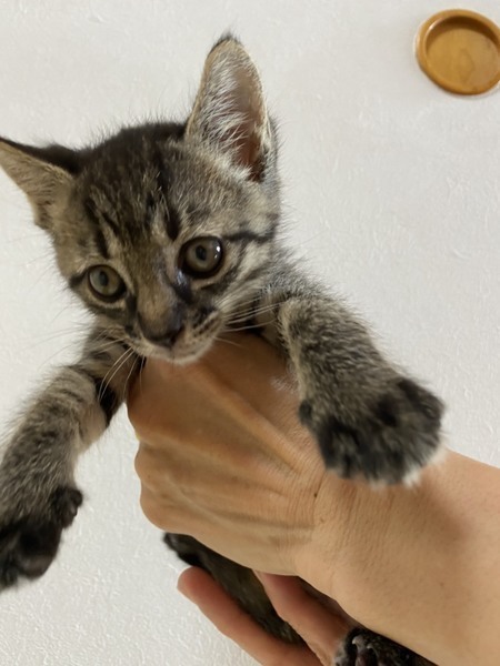 | 特徴(性格など) | ◆陸太くん ●月齢の小さな子猫は、以下の条件についてご了承の上で応募をご検討下さい。 ◆高齢者のみのご家族からの子猫のお申し込みはお断りさせて頂きます。 ◆お留守番の少ないご家庭を希望します。 ◆小さなお子様のいるご家庭は状況によりお断りする場合がございます。 ○神奈川県伊勢原市内で保護されました。 ○生後1ヶ月くらい(2021年6月上旬時点)の、キジトラの男の子です。体重は680gです。 ○尻尾は短めで骨太タイプです。 ○人馴れ抜群です。 ○兄弟と仲良くにゃんこプロレスしたり、走り回ったりと元気に過ごしています。 ○同じく里親募集中の「海太」、「空太」とは兄弟です。 ○まだ小さな仔猫のため、お留守番の少ないおうちをお待ちしております。 ★ワクチン、ウイルス検査は近日実施予定。 ★不妊手術は成長と体調をみて実施予定です。 ○6/6(日)開催の譲渡会に参加予定!下の要項をお読みいただき、ぜひ会いに来てください♪ ☆★☆★☆★☆★☆★☆★☆★☆★☆★☆★☆★☆★☆★☆★☆★☆★☆★☆★☆ ~6月6日(日)市ヶ尾にて譲渡会開催!~ ◎場所・・「東急ドエル市ヶ尾プラーザビル2階集会場」 神奈川県横浜市青葉区市ヶ尾町1154-2 田園都市線「市ヶ尾」駅西口より徒歩約2分 ◎日程・・6月6日(日)(雨天決行) ◎時間・・13時から16時(受付は15時30分まで) (会場に利用可能な駐車場はございません。近隣のコインパーキングをご利用ください。) *3密対策のため、当日12時30分より整理券を配布いたします。整理券枚数には限りがございますので、上限に達した場合はご入場できません。 *参加の際は、マスクの着用、アルコール消毒のご協力をお願いいたします。 *当日は検温の上、体温が37度以上の方はご参加いただけません。 *混雑状況により、中止させていただく場合がございます。 ※参加予定の犬猫は体調により参加できない場合があります。ご了承ください。 ☆★☆★☆★☆★☆★☆★☆★☆★☆★☆★☆★☆★☆★☆★☆★☆★☆★☆★☆ |