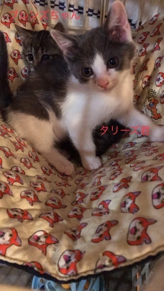| 特徴(性格など) | ◆タリーズくん ●月齢の小さな子猫は、以下の条件についてご了承の上で応募をご検討下さい。 ◆高齢者のみのご家族からの子猫のお申し込みはお断りさせて頂きます。 ◆お留守番の少ないご家庭を希望します。 ◆小さなお子様のいるご家庭は状況によりお断りする場合がございます。 ○神奈川県伊勢原市内で保護されました。 ○生後2ヶ月くらい(2021年6月上旬時点)の、グレー白の男の子です。体重は1050gです。 ○尻尾はまっすぐです。 ○現在涙目のため点眼薬で治療しています。 ○ちょっと怖がりですが、抱っこなでなでするとゴロゴロ甘えん坊さんになります。 ○同居の子猫と二匹で元気よく遊んでいます。 ○まだ小さな仔猫のため、お留守番の少ないおうちをお待ちしております。 ★ワクチン1回済み、ウイルス検査は猫エイズ、猫白血病ともに陰性。 ★不妊手術は成長と体調をみて実施予定です。 ★ 現在涙目のため点眼薬で治療しています。 ○6/6(日)開催の譲渡会に参加予定!下の要項をお読みいただき、ぜひ会いに来てください♪ ☆★☆★☆★☆★☆★☆★☆★☆★☆★☆★☆★☆★☆★☆★☆★☆★☆★☆★☆ ~6月6日(日)市ヶ尾にて譲渡会開催!~ ◎場所・・「東急ドエル市ヶ尾プラーザビル2階集会場」 神奈川県横浜市青葉区市ヶ尾町1154-2 田園都市線「市ヶ尾」駅西口より徒歩約2分 ◎日程・・6月6日(日)(雨天決行) ◎時間・・13時から16時(受付は15時30分まで) (会場に利用可能な駐車場はございません。近隣のコインパーキングをご利用ください。) *3密対策のため、当日12時30分より整理券を配布いたします。整理券枚数には限りがございますので、上限に達した場合はご入場できません。 *参加の際は、マスクの着用、アルコール消毒のご協力をお願いいたします。 *当日は検温の上、体温が37度以上の方はご参加いただけません。 *混雑状況により、中止させていただく場合がございます。 ※参加予定の犬猫は体調により参加できない場合があります。ご了承ください。 ☆★☆★☆★☆★☆★☆★☆★☆★☆★☆★☆★☆★☆★☆★☆★☆★☆★☆★☆ |