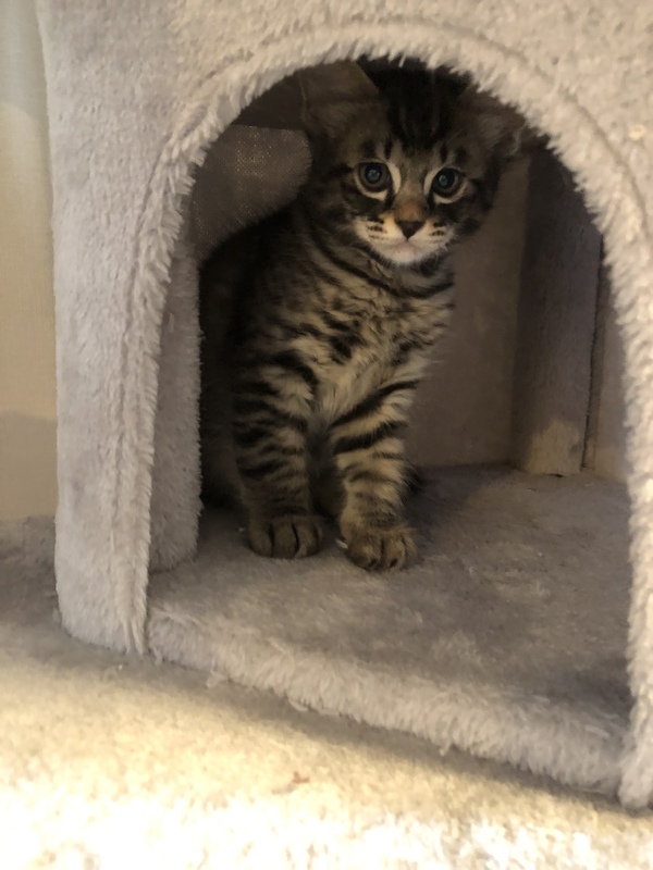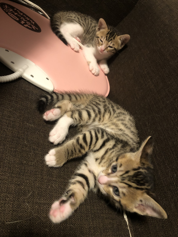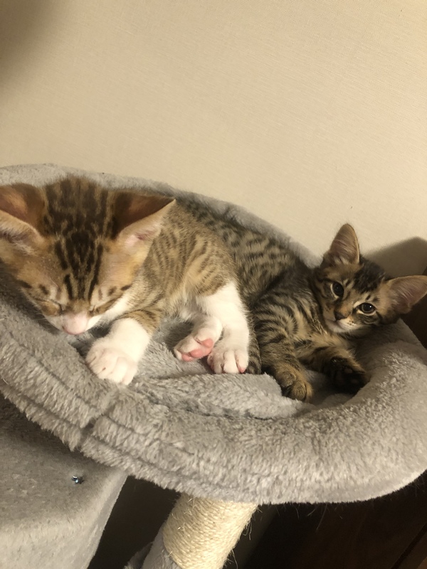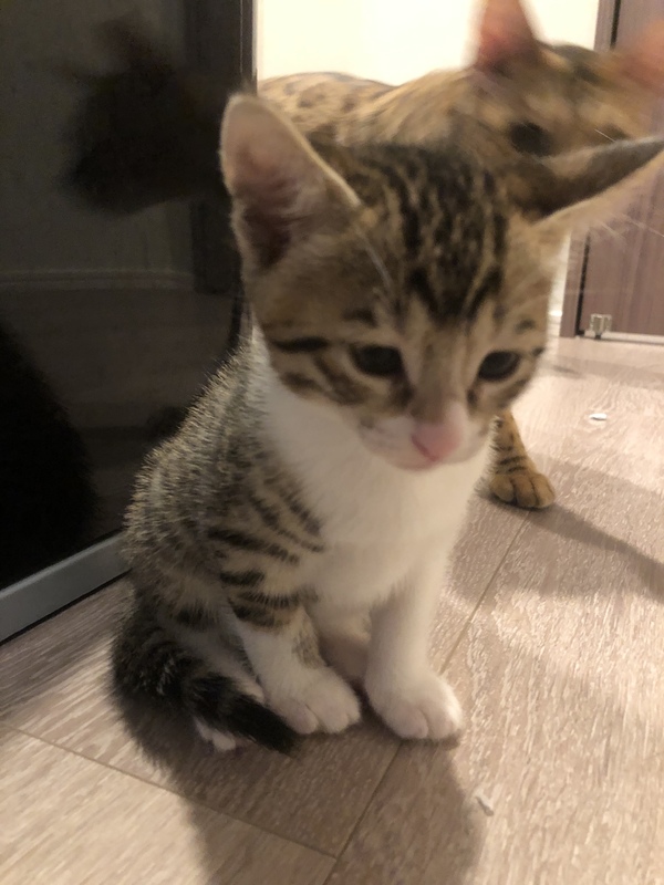 | 特徴(性格など) | ベンガルとキジトラのハーフです。 白と黒の子、薄茶色の子、白の子、など合わせて8匹産まれました。 活発な子、寝るのが好きな子、好奇心旺盛な子、いろんな性格の子がいます。 |