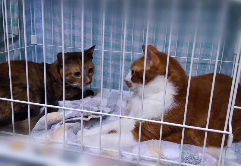 | 特徴(性格など) | 兄猫…茶白 推定3歳 体重5.2kg 妹猫…三毛 推定3歳 体重4.3kg |