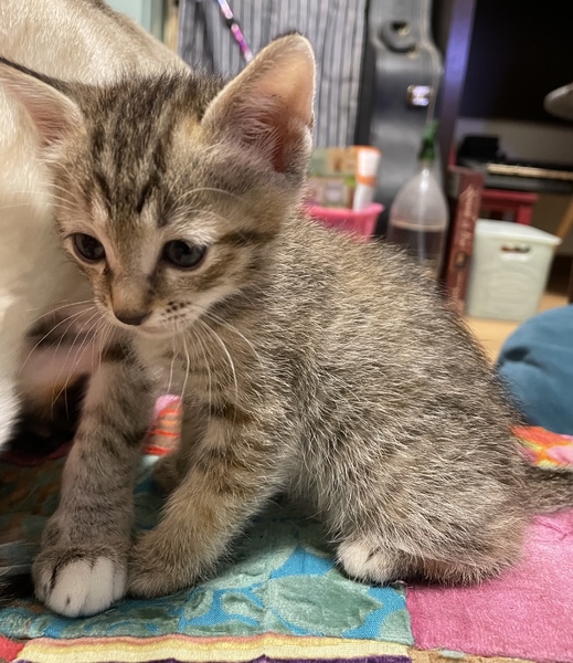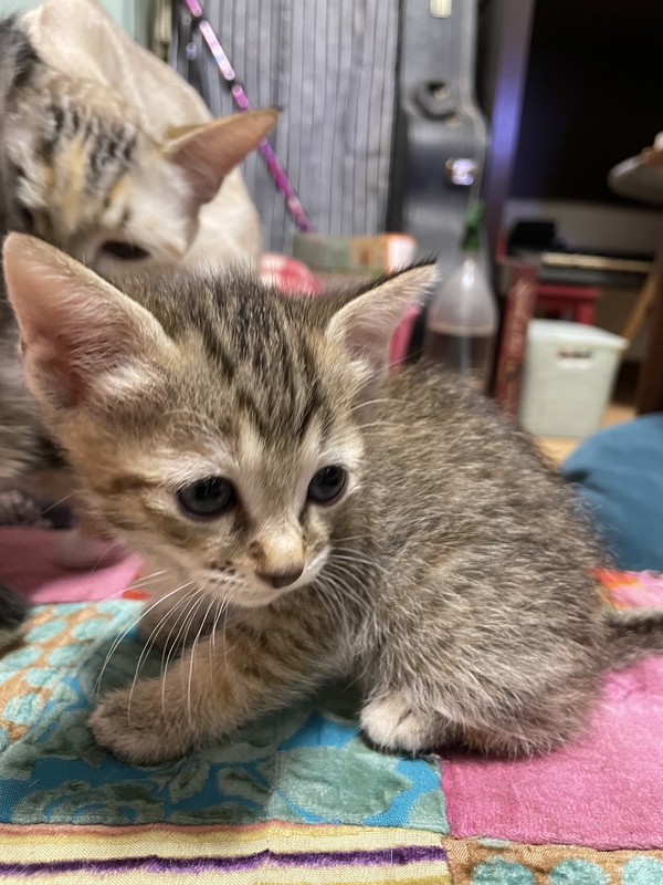 | 里親募集する理由 | 2匹の♂♀と暮らしております。 大人気の動物病院で避妊去勢手術が2ヵ月待ちで♂を去勢避妊手術した60日後に♀が出産してしまいました。子猫は現在、半母乳半離乳食で、離乳段階です。 授乳を完全に終えたら避妊手術予定です。 猫さん好きなお方、どうか子猫を家族に迎えてくださいませ。 |