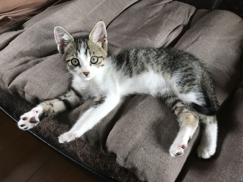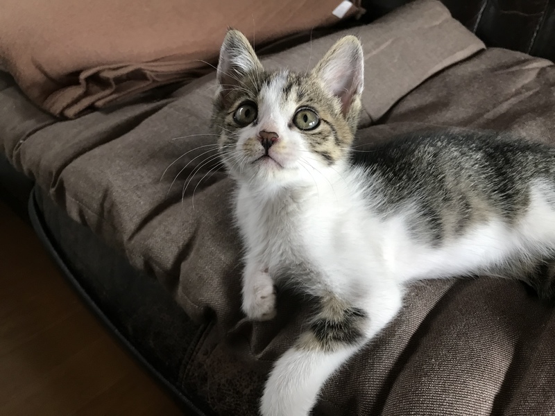 | 里親募集する理由 | 5月31日、近くの幼稚園駐車場で車のエンジンルームにいたところを保護。 我が家には先住猫2匹がいますので、里親さんを募集します。 その日のうちに動物病院に行き、簡単な健康診断(問題なし)とレボリューションを済ませました。 |