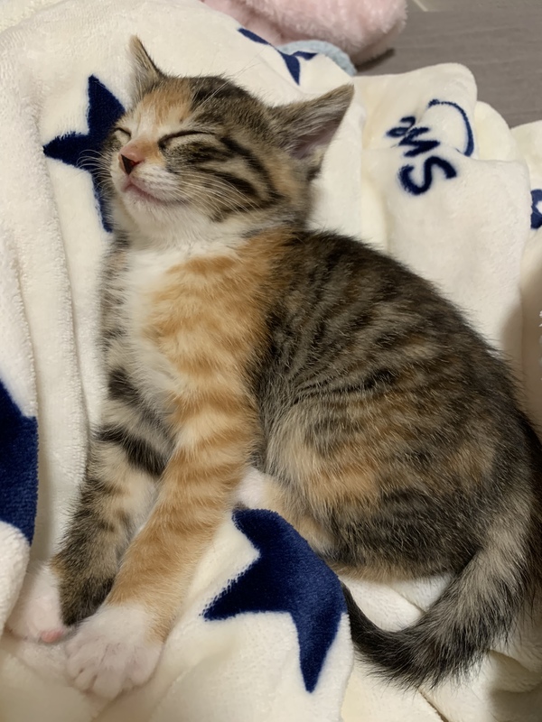 | 特徴(性格など) | 三毛、茶トラ、キジトラなど色々な柄が入っています。お鼻に特徴があります。 とっても元気に走り回ります。 |