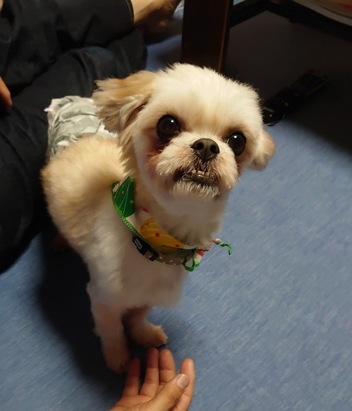 | 特徴(性格など) | シーズーの男の子、旬君です。 2015年9月20日生まれ、5歳です。 7月8日現在 可愛さマシマシ! お散歩大好き♪(おトイレも済ませます) にこにこな毎日です^^ 毛玉だらけでしたので、マルガリータになっておりますが、被毛が伸びるととてもかわいくなると思います。 アンダーなお口も、上手に隠れるはず^^です。 保護して日が浅いのですが、人の後をついてまわり可愛いです♪ 思うように食べれなかったのか、なかなかの食いしん坊さんなので、つまみ食い要注意です。 家庭が初めて、 初めてがいっぱい!の男の子、楽しいことたくさんあるよと教えてあげてください。 |