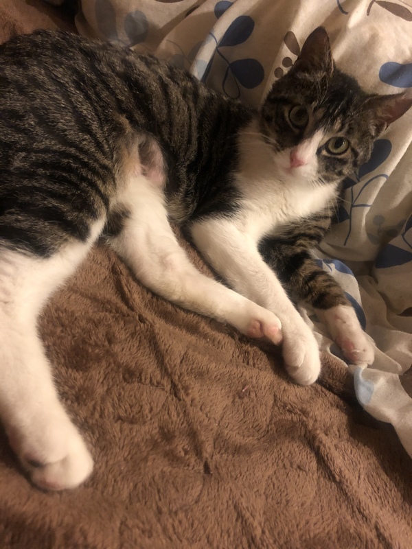 | 特徴(性格など) | 名前はミア(仮名)です。私のものという意味があります。お気に入りのものや、ミアちゃんを愛してくれる飼い主さんが見つけたくこの名前をつけました。 ナデナデ大好き甘えんぼさんです。すぐへそ天しナデナデを要求します。お尻を高く突き上げたり、ゴロゴロ喉を鳴らしながらゴロンゴロンする姿が可愛いです。お腹をナデナデすると喜びます。人が大好きでストーカーします。添い寝してくれます!お転婆娘です。 目がキリッとした美人さんです。左右の足の柄が違うとこがチャームポイントです。 |