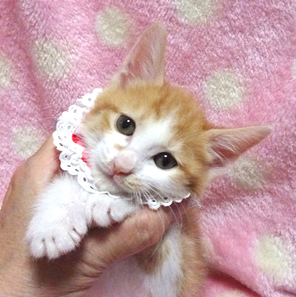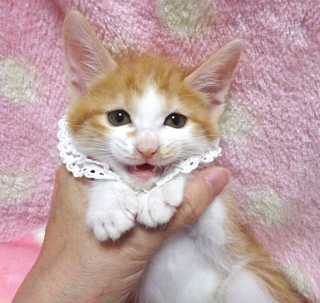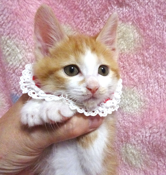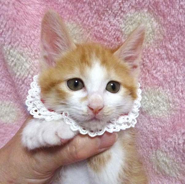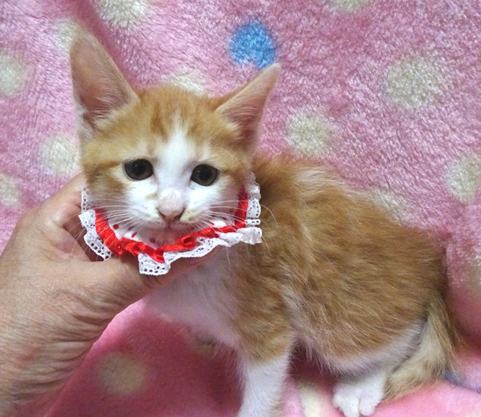 | 特徴(性格など) | 【猫の仮名】 クルミちゃん (担当 松嶋) 【毛色・柄】 茶白、長いシッポ 少ない茶白の女の子です♪ 小さくてもトイレができる賢い子です♪ 乳飲み子から育てたので大変人慣れしています♪ 人に育てられたので人間を親だと思っています。 猫を飼うのが初めての方でも大丈夫です♪ 走っても大丈夫なペット可のお住まいで、家族の一員として生涯大切にして下さるご家族を募集しています。 ☆まだ小さいので猫だけのお留守番が長時間でないご家族を希望します。 |