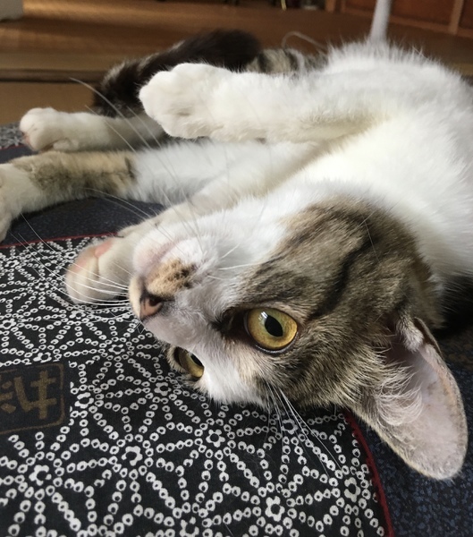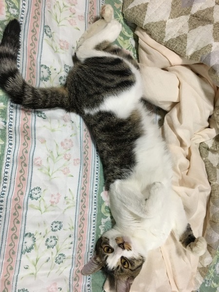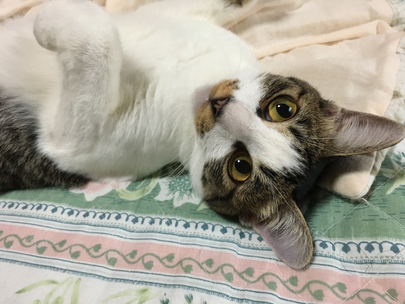 | 特徴(性格など) | よく食べよく寝てよく遊びます! 天使みたいに可愛い子です☆ ゴハンが欲しい時は、ゴハン♪と鳴いておねだりするお利口さんです。 猫エイズ陽性ですが、現状は至って健康です☺️ |