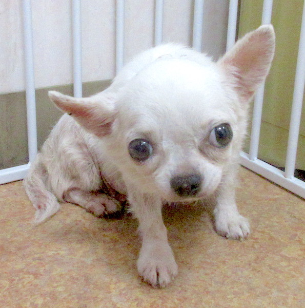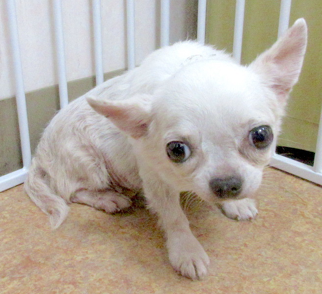 | 特徴(性格など) | チワワの『てるこ』です。 (ちばわんHP掲載番号No.4218)←申込時は必ず犬の名前とこの番号を記載し、下記内容をよくお読みの上ちばわんHPからお願いします。 ※「生まれた月日」は推定です。生育環境によって誤差が生じることがあります。 【毛色】白 【状態】フィラリア(-)、検便(ー)、ワクチン接種済、狂犬病予防接種予定、マイクロチップ装着済 【人馴】問題なし 【性格・その他】 ぱっちり目の可愛い女の子です。 大人しく、人にも他犬にも吠えることはありません。人の顔をじっと見上げ、小さく尻尾を振っています。オヤツは人の手から食べられますので、焦らず接していけば徐々に馴れると思います。 これまで狭いケージで暮らしていたようで、今はハウス内でトイレができません。極力体を汚さないように我慢しているようで、ハウスから出した時にまとめて済ませることが多いです。 散歩は外に慣れておらず、まだ歩くことができません。抱っこで公園まで連れていき、日光浴から慣らしています。 車酔いは今のところありません。 これまでの環境が悪かったせいで、皮膚の状態が良くありません。 飼育環境が良くなり、今後改善していくと思いますが完治には時間がかかります。特に下半身の皮膚の状態が悪く、頻繁なシャンプーと治療が必要です。 また、現段階では治療の必要はありませんが不整脈が見られます。 引き続き室内飼育で、皮膚トラブルの治療とワクチン接種やフィラリア予防などの健康管理、脱走・逸走への厳重な注意と対策を必ずお約束していただける関東圏内のご家庭で、終生家族の一員として大切にしてくださる方からのお問い合わせをお待ちしております。 【預かり場所】東京都八王子市 【預かり日記】ムクの日常(インスタグラム) https://instagram.com/muku_riderecane 【お申込み】 ちばわんの保護犬『てるこ』への申し込みはhttp://www.chibawan.net/contactform_dogからお願いします。 |
