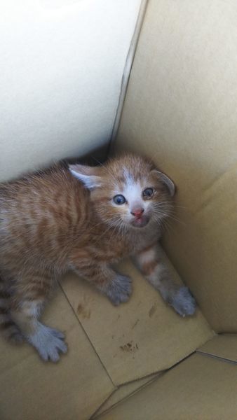 | 特徴(性格など) | 茶トラの推定生後2か月、700gのオスの子猫になります。 保護したばかりです。 病院に連れていき、ノミダニの薬の投与、風邪をひいているとのことで結膜炎の薬を処方してもらい、服用しています。 |