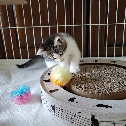 | 里親募集する理由 | 屋根の上から逃げてしまい探していたところ、近くの工場で子猫の鳴き声。ブロックの中に隠れていたのを発見。2時間かけて人間が傷だらけになりながら保護しました。 | ||