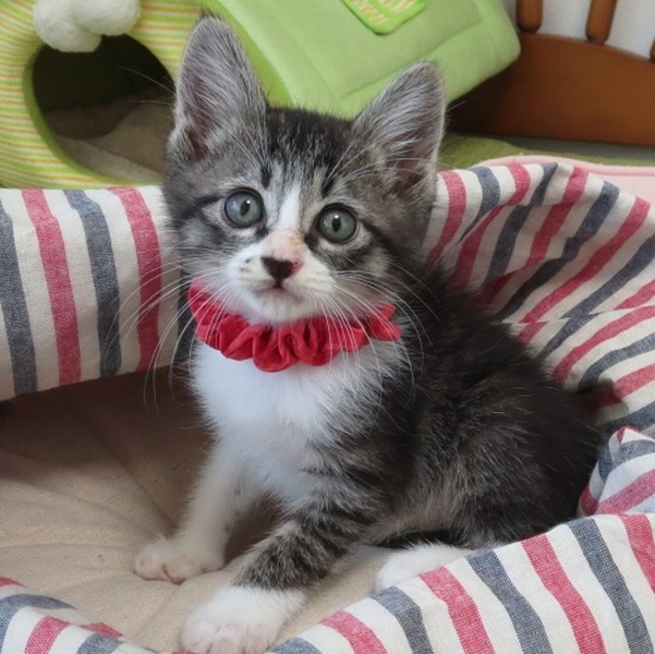 | 里親募集する理由 | 動物病院の先生から、病院のトリマーさんの知人が赤ちゃん猫4匹保護して困っているので助けて貰えないかと頼まれ、引き受けました。 | ||