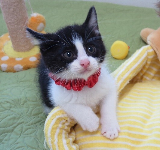 | 里親募集する理由 | 動物病院の先生から、病院のトリマーさんの知人が赤ちゃん猫4匹保護して困っているので助けて貰えないかと頼まれ、引き受けました。 | ||