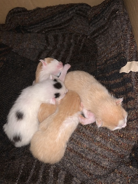 | 特徴(性格など) | 白に黒ブチ1匹 茶白3匹 性格等はまだ小さいため不明 親は三毛です。 |