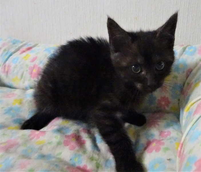 | 特徴(性格など) | 仮名: ロックくん(オス) 毛色: 黒猫のように見えますが、頭辺りはこげ茶で、体には良くみると縞模様があり、大人になると縞模様が出る黒猫のように思います。 性格: ケージに近づくと寄ってきてくれます。 抱っこすると喉をゴロゴロ鳴らして喜んでいるようです。 兄弟のゴウくんと比べるとのんびりとした子のように思います。 2匹はプロレスしたりして良く遊んでいますし、寝るのも一緒ですから、2匹一緒に迎えて下さるご家庭を希望します。 ノミ取り済 検便済 駆虫済 3種混合ワクチン済 猫エイズ・白血病ウィルス検査はともに陰性 |